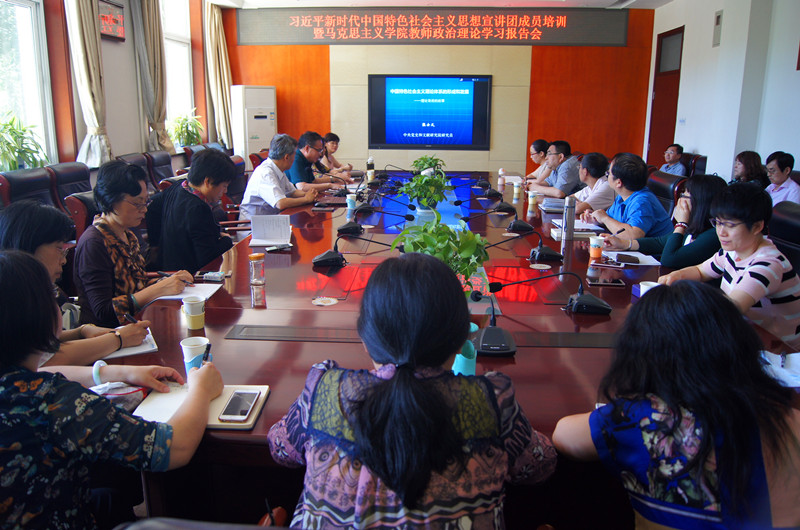 报告中,张士义研究员结合自己承担的调研课题,从中国特色社会主义理论体系的思想来源、形成过程、最新发展三个方面解读了中国特色社会主义理论体系和习近平新时代中国特色社会主义思想形成、发展的历史逻辑和理论逻辑。与会人员与张士义研究员就有关问题进行了深入交流。通过报告和交流,教师们进一步理解了中国特色社会主义理论体系和习近平新时代中国特色社会主义思想,对开展教学和研究工作起到了积极作用。