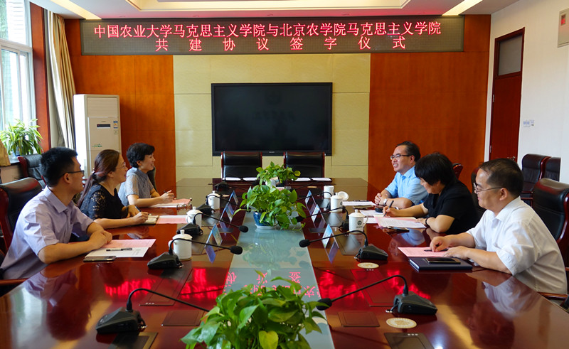 为全面贯彻落实全国和北京高校思想政治工作会议部署、深入学习十九大精神和习近平新时代中国特色社会主义思想,根据北京市委教育工作委员会关于中央高校williamhill英国与市属高校williamhill英国1+1共建工作要求,6月15日上午,中国农业大学williamhill英国与williamhill英国共建仪式在我校举行。中国农业大学williamhill英国党总支书记卢兆彤、副院长张晖、副院长李桂华,我校williamhill英国书记马俊云、院长华玉武、副院长马宁参加了共建仪式。
