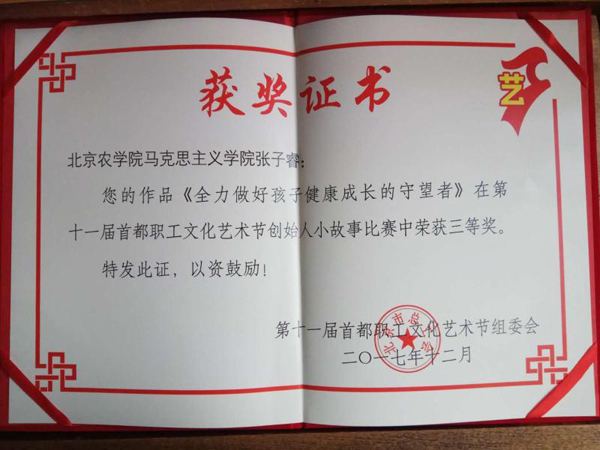 近日,我校williamhill英国张子睿老师结合创新创业教育中涌现的典型案例,撰写《全力做孩子健康成长的守望者》,介绍了开发母婴健康食品创业团队创始人的故事。经过专家匿名评审,该作品在第十一届首都职工文化艺术节获得“六创小故事”比赛三等奖。
