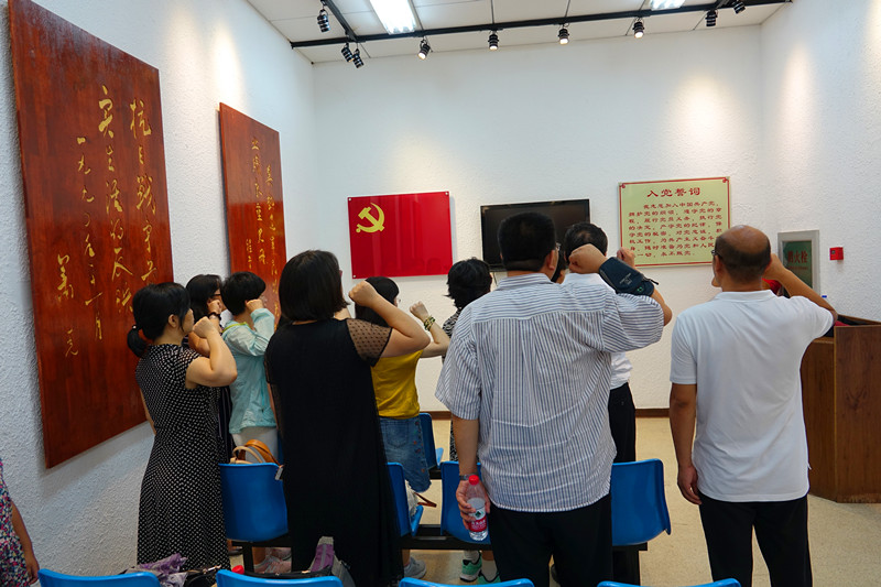 在纪念馆中,williamhill英国书记马俊云带领党员教师重温入党誓词,提醒自己坚定理想信念、做好教育教学工作。