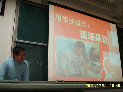 2010年12月9日,《毛泽东思想和中国特色社会主义理论体系概论》课程开展了学生总结交流活动。在任课教师王永芳、张一平、于桂兰、马淑芹老师的指导下,同学们以学习小组为单位,在本学期常态训练新闻发布活动的基础上,由各班学习委员主持,圆满完成了课程总结交流活动。