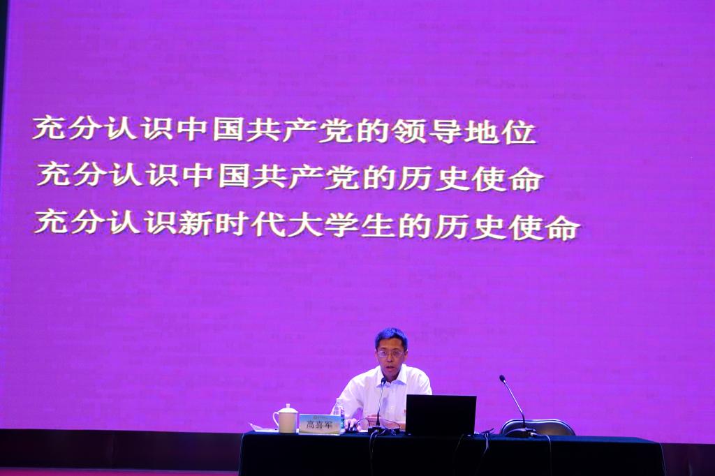 校党委副书记高喜军以《坚定信念 努力做合格的共产党员》为题,从牢记历史使命、端正入党动机、努力完善自我等三个方面进行讲解,希望大家学习理论,坚定信念,艰苦朴素,勤奋好学,争取成为一名合格的共产党员。