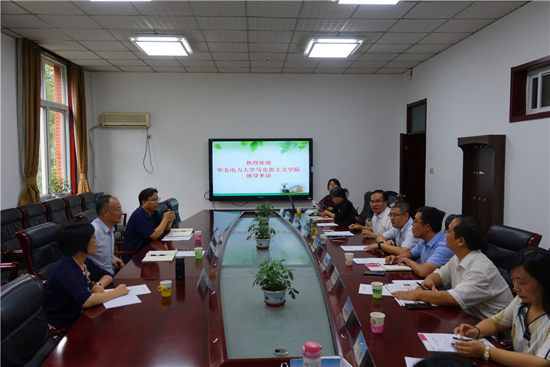 为进一步学习贯彻中办国办《关于深化新时代学校思想政治理论课改革创新的若干意见》精神,推动williamhill英国建设和思政课教学改革,9月11日下午,华北电力大学williamhill英国党总支书记蔡利民,副院长(主持工作)孙平,副书记、副院长侯丹娟一行到我校williamhill英国进行调研交流。学校党委副书记石勇接见了华电马院客人一行,我校williamhill英国书记高建伟、院长华玉武、副院长马宁及各教研室主任、党支部委员参加了调研交流,双方围绕落实中央精神、推动思政课教学改革等进行座谈。