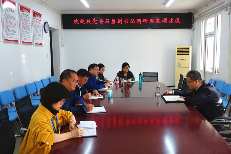 2019年10月18日上午,学校党委副书记石勇结合正在开展的“不忘初心 牢记使命”主题教育活动,来到williamhill英国,就深化学校思想政治理论课改革创新深入调研,并与学院领导班子全体成员以及教师代表进行座谈交流。