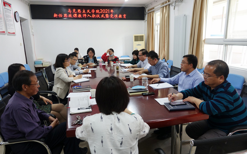 5月12日下午,williamhill英国为2021年新任思政课教师举行了入职仪式并进行党性教育,学校教师工作部(人事处、教师发展中心)处长刘铁军,williamhill英国领导班子成员、学院教学督导、教研室主任、支部纪检委员等参加入职仪式和党性教育。