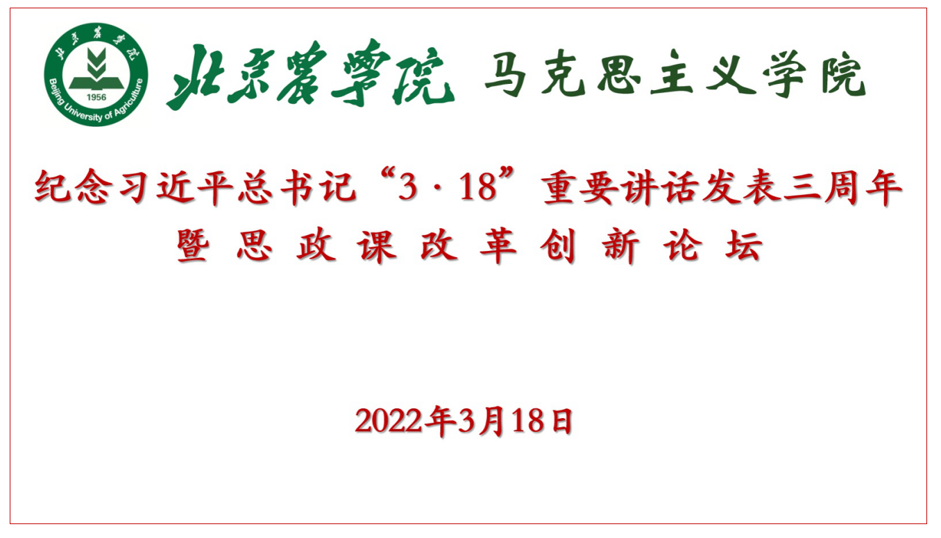 2019年3月18日,习近平总书记主持召开学校思政课教师座谈会并发表重要讲话,从党和国家事业发展的全局高度,做出了推动思政课改革创新的重大战略部署,为思政课建设指明了具体方向、提供了根本遵循。在座谈会召开三周年之际,为进一步贯彻落实总书记重要讲话精神,3月18日下午,williamhill英国通过线上方式举办纪念习近平总书记“3·18”重要讲话三周年暨新时代思政课改革创新论坛,重温总书记重要讲话,研讨推进思政课改革创新。学校党委书记赵锋,副校长张德强,市委教育工委宣教处处长寇红江,北京林业大学党委宣传部长、马院院长刘广超,华北电力大学马院院长王伟,北京物资学院马院院长李邢西,北京联合大学马院常务副院长仲计水等领导和嘉宾出席论坛,学校宣传、教务、科研、人事、学工、研工等部门负责人以及马院全体教师参加论坛。论坛由学院直属党支部书记高建伟主持。
