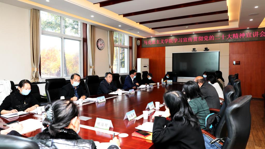 11月7日下午,党委书记赵锋为我校广大思政课教师宣讲党的二十大精神。