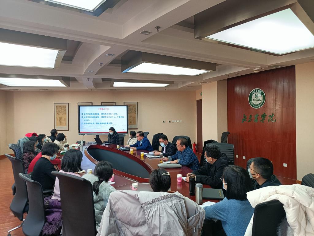 华玉武院长对坚持思政课改革创新、提高思政课育人实效,加强学科和团队建设、搭建教学科研平台、开展有组织科研以及深化作风建设、推进学院高质量发展等2023年三项重点工作进行了部署。从加强师资队伍建设、坚持思政课改革创新、加强学科建设和科研团队建设以及加强直属党支部建设、以高质量党建引领思政课高质量发展等方面介绍了具体工作举措。华玉武院长强调,在学校党委坚强领导下,将以2023年“质量提升年”为契机,把“深化作风建设、推动高质量发展”细化落实到思政课改革创新的各个环节,努力打造具有“首善标准、红色基因、北农特色”的思政金课。