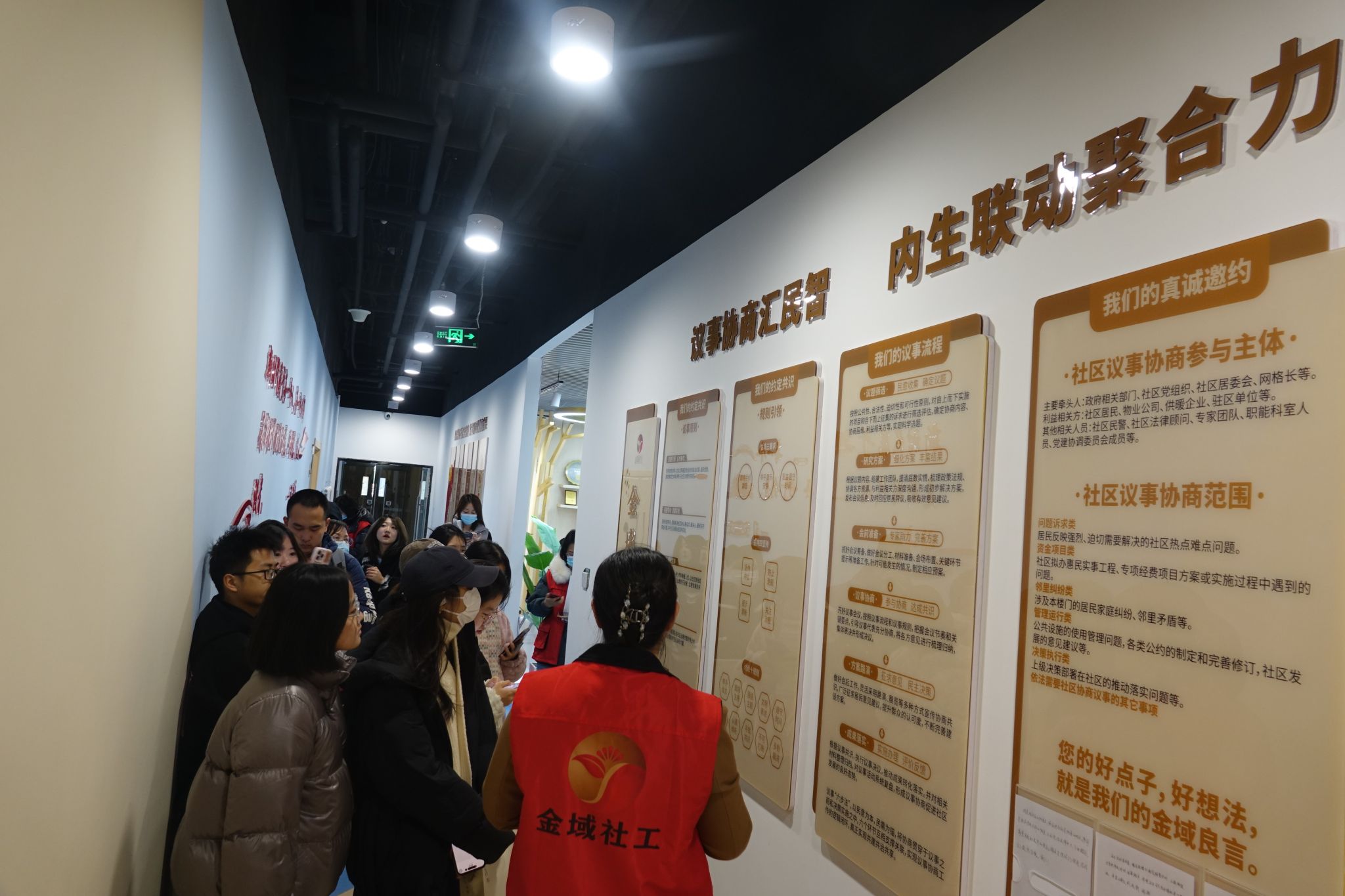 11月17日,williamhill英国组织学生代表深入到回龙观街道寺锦·回龙观城市会客厅、金域国际社区参观回天地区协商议事成效。寺锦·回龙观城市会客厅是通过搭建协商议事平台,广泛发动社会各界和居民,凝聚多方智慧成为新型公共文化空间,以共创、共建、共享为核心理念,为辖区居民提供展览展示、会客议事、互动体验、休闲学习等服务,被评为“2022北京网红打卡地”。在金域国际社区,党支部书记兼居委会、书记工作室主任陈东岩介绍了社区议事协商的发展历程,探索出了多方共同参与社区协商共建的模式和机制,打造了“金域良言”协商议事品牌,切实解决居民急难愁盼问题,并形成了相应典型案例。