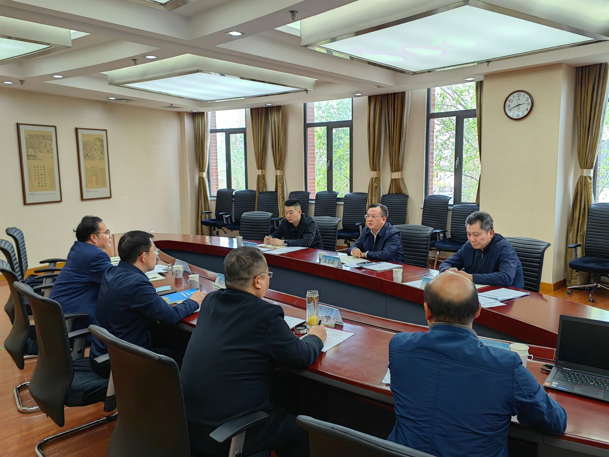 学院党政负责人高建伟、华玉武分别汇报了党纪学习教育工作方案、党委巡察整改落实情况以及近年来思政课改革创新取得的进展和成效。