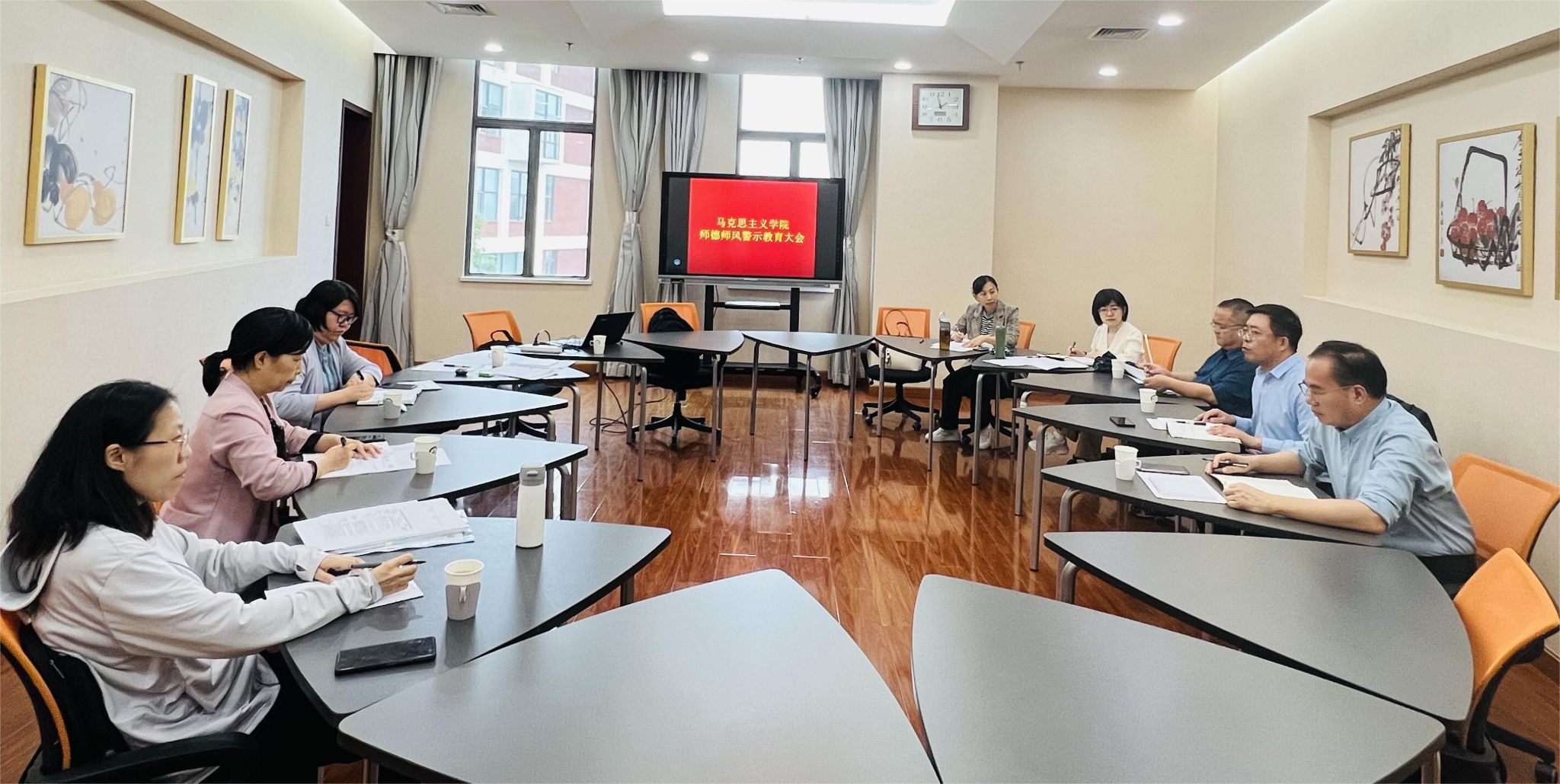 5月24日下午,williamhill英国直属党支部召开专题会议,传达学校党委党纪学习教育工作推进会精神,听取各教研室党纪学习教育情况汇报,研讨交流下一步工作措施,组织观看警示教育片开展警示教育。会议由党组织负责人高建伟主持,学院班子成员、直属党支部委员、教研室主任等参加会议。