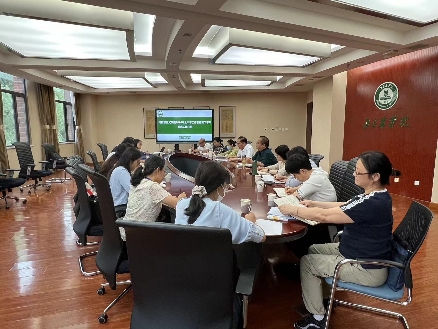 华玉武院长全面总结了学院2024年上半年工作。从“学习宣传党的创新理论,加强师资队伍建设,加强思政课改革创新,开展有组织科研,持续改进作风、狠抓工作落实”五个方面,安排部署了下半年重点工作任务。