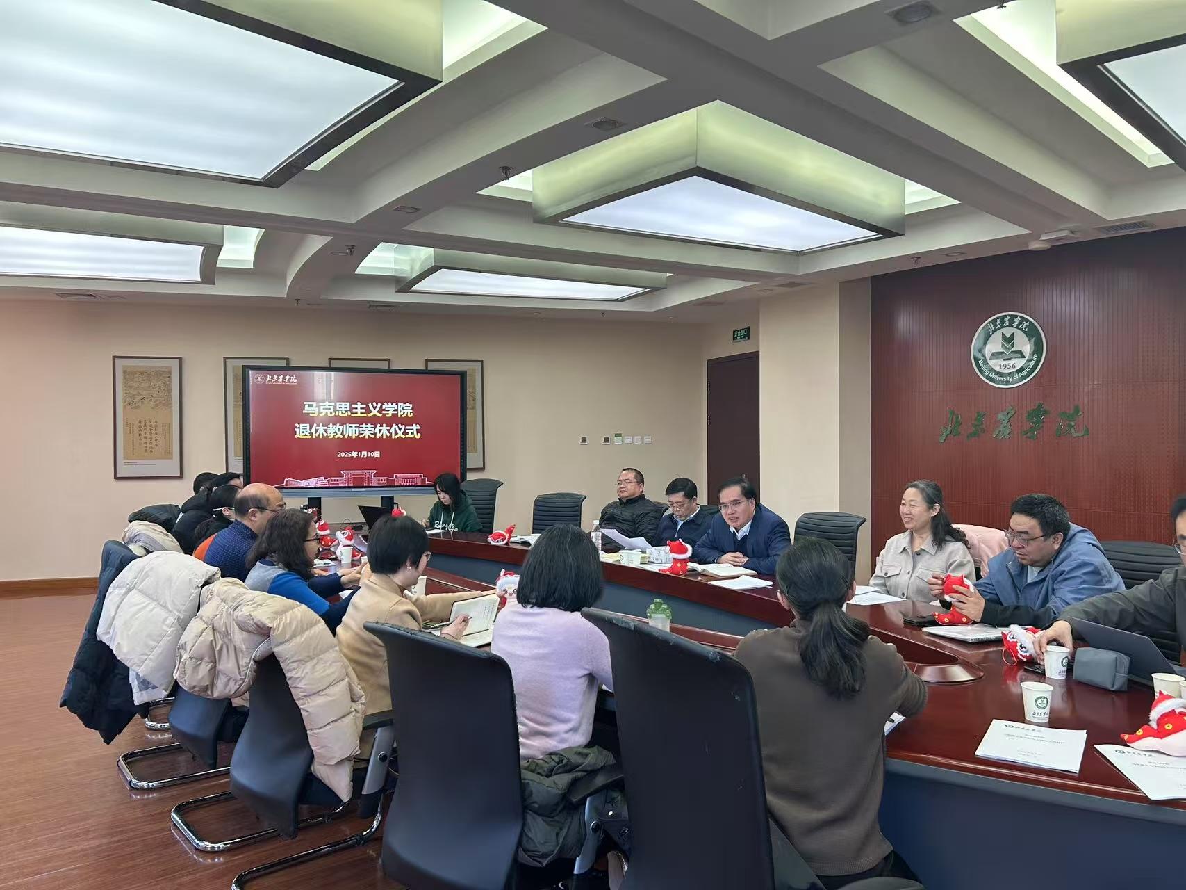 分享环节,荣休教师代表余华东、路文联回顾了从教生涯的点点滴滴,深感马院大家庭的温暖,感谢学校与学院对自己事业、生活各方面的支持;荣休仪式让他们真正体会到退休的庄重感,也为能见证学院的生机活力而欣慰。