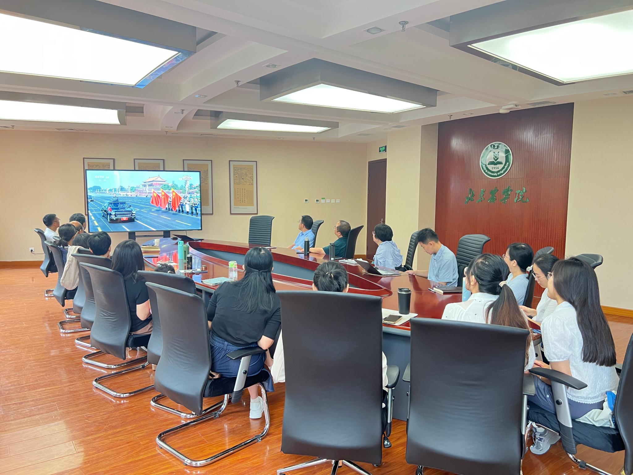 学院院长华玉武在大会现场聆听了总书记的重要讲话,现场观看了盛大阅兵式。他说,作为一名新时代思政课教师,我为中国今天的强大感动无比光荣和自豪!我要把今天所见所闻所感深刻融入思政课教学,讲给青年老师和学生,引导青年学生坚定不移听党话、跟党走。要组织思政课教师讲好抗战故事这堂“大思政课”,弘扬伟大抗战精神,践行初心使命,赓续红色血脉,积极推进伟大抗战精神进教案、进课堂、进学生头脑,激励青年学生在推进强国建设、民族复兴伟业中展现青春作为、贡献青春力量!