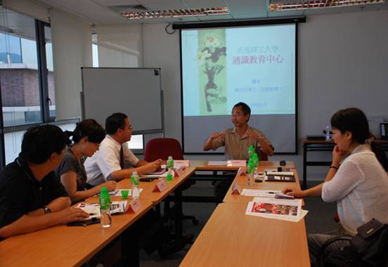 香港城市大学学生发展处陈杰年处长介绍了该处的架构及其工作定位,人文及社会科学学院的赵剑卿副院长介绍了该院的专业设置及教学管理情况;香港理工大学中国内地事务处邓妙霞副主任介绍了香港理工大学的整体概况,通识教育中心伍伯常博士介绍了理工大学的通识教育情况;香港浸会大学行政处江月琼助理处长介绍了浸会大学的主要情况,学生事务处行政事务主管沈黄素莲女士介绍了学生管理情况,陈强立博士介绍了“价值与人生意义” 这门通识教育课程的具体运行情况。