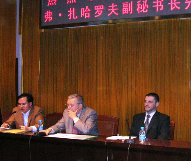 4月28日下午,我校名誉教授、上海合作组织副秘书长弗•扎哈罗夫(俄罗斯)携上合组织高翻库佐夫来我校进行访问,并为人文社科系的百余名师生作了题为“上海合作组织的历史发展及与中国的合作”的学术报告。