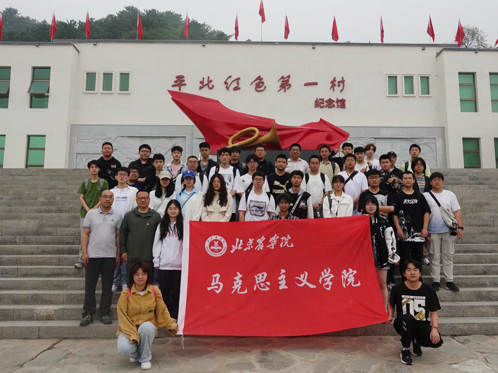 在沙塘沟村,师生参观了北京市爱国主义教育基地—平北红色第一村纪念馆,纪念馆以史为线,客观真实地展现了从创建平北第一个农村党支部开始,在中国共产党领导下,沙塘沟及周边群众与敌周旋、不畏牺牲、粉碎扫荡、反击“蚕食”、英勇锄奸的革命故事,展现沙塘沟代表的英雄人物和新中国成立前入党的老党员的光辉事迹,以及新时代的沙塘沟四个历史时期代表性烈士的生平事迹。师生们在一块块展板、一件件实物面前驻足停留,对这个隐匿在深山里的小村肃然起敬,许多鲜为人知的故事更唤起了大家对曾经浴血奋战、献出生命的先烈们的无限敬仰。