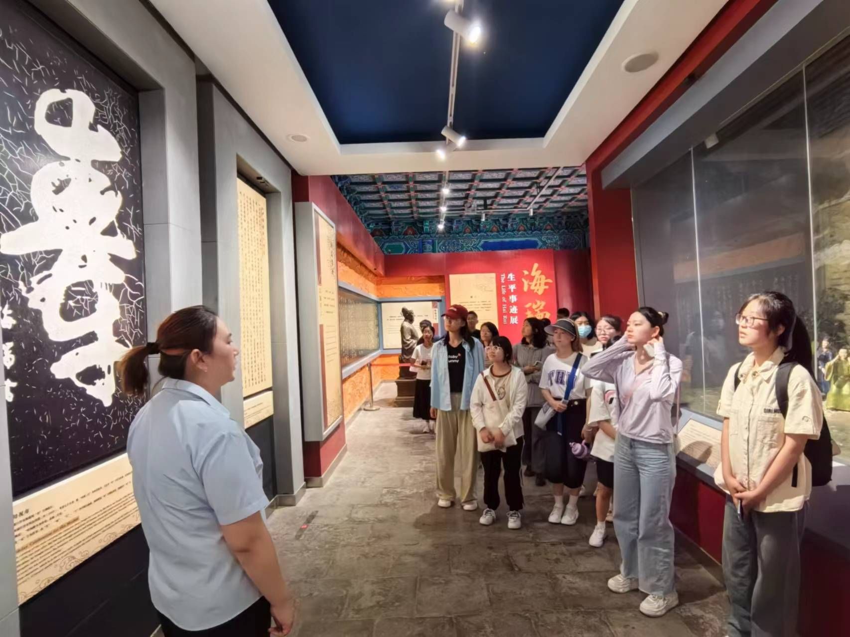 在讲解员的介绍下,全体师生依次参观了“明镜昭廉”文化园四大部分组成:昭廉广场、明代反贪尚廉历史陈列展馆、明代清官廉吏展馆和海瑞事迹展馆;通过一幅幅生动的画面和场景,师生认真学习明代的反贪制度体系、明代反贪尚廉史事、明代的贪腐之风、明代清官事迹、海瑞生平事迹等明代反腐倡廉的历史面貌,深刻感悟明代反贪倡廉、惩贪治贪、崇廉尚廉的历史文化,筑牢拒腐防变的思想道德防线。