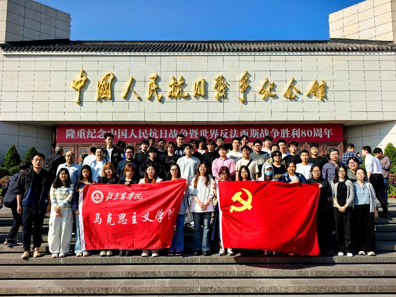 2025年9月24日下午,马院五名专任教师携手风景园林专业两个贯通班学生,共同走进中国人民抗日战争纪念馆,开展“赓续抗战精神,厚植家国情怀”主题参观学习活动。此次跨学院联动学习,旨在通过沉浸式党史教育,强化师生历史认知,推动思想政治教育与专业素养培育深度融合。