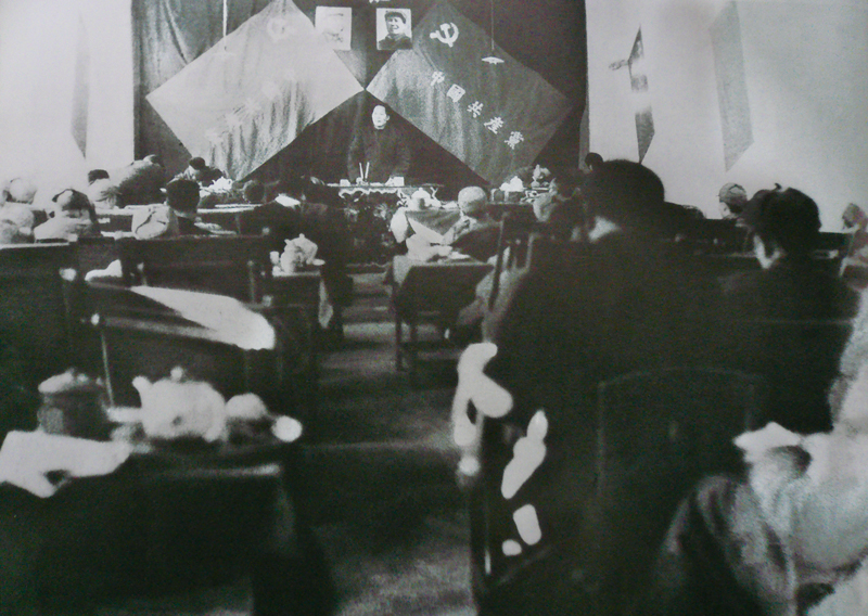 1949年3月5日至13日,党的七届二中全会在河北省平山县西柏坡召开,毛泽东在会上作报告。图为当时的会议现场。
