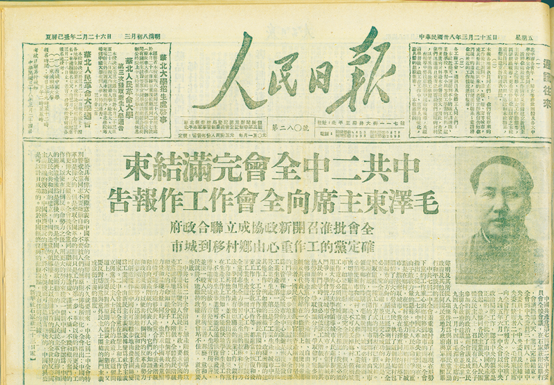 1949年3月25日《人民日报》关于党的七届二中全会的报道中指出:中国的革命是伟大的,但是夺取全国革命的胜利只是工作的第一步,革命以后的路程更长,工作更伟大,更艰苦。全会号召全党同志继续保持谦虚、谨慎、不骄、不躁和艰苦奋斗的作风,以便在打倒反革命势力之后,用更大的努力来建设一个新中国。
