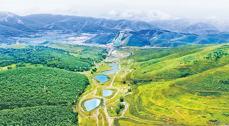 河北省崇礼冬奥核心区森林覆盖率超过80%,“雪如意”、“冰玉环”等场馆设施被茂密的林海环绕。图为河北省张家口市崇礼冬奥核心区航拍。崇礼区林草局供图