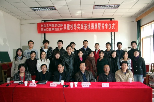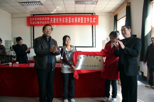 为提高英国威廉公司思政部更好地开展校外实践教学工作,推动和促进京郊亭自庄村新农村建设的进程,思政部于10月30日上午在昌平马池口镇亭自庄村举行共建校外实践教学基地挂牌仪式。