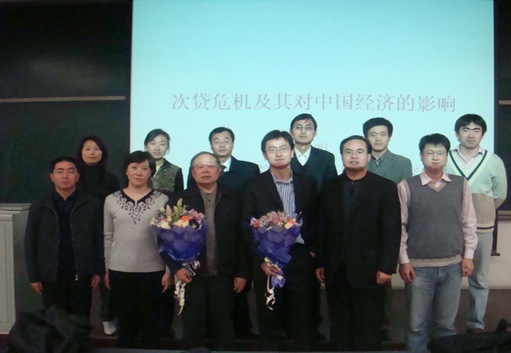 11月19 日下午4点在教B-103,中国社会科学院世界经济与政治研究所党委书记、副所长王秀奎、中国社会科学院世界经济与政治研究所国际金融研究中心研究员张明应邀来我系作报告,报告的题目是:次贷危机及对中国经济的影响。此次报告会由华玉武主任主持.