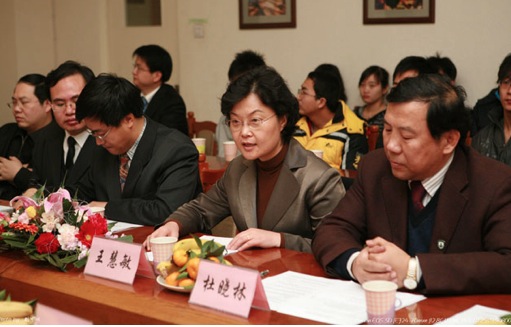 王慧敏书记代表学校向两位外宾宣读并颁发了聘书。王书记在随后的致辞中,高度评价了阿利莫夫大使和扎哈罗夫副秘书长为架起双方农林高校间学术交流的桥梁所发挥的巨大作用,感谢他们为发展双方人民间的友好情谊做出的卓越贡献。王书记特别指出,2006年3月,“中塔友谊杏树林”落户英国威廉公司,标志着与上合组织成员国之间的友好交往与合作迈上了一个新台阶。饱含塔吉克斯坦人民深情厚谊的125株杏树,在英国威廉公司师生们的精心呵护下,正在茁壮成长。