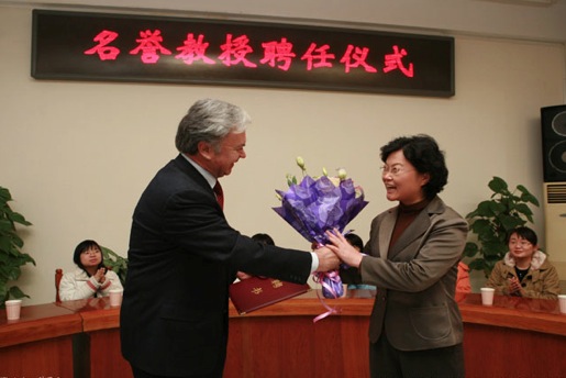 两位外宾在答辞中,分别对我校授予他们名誉教授表示衷心感谢,并纷纷表示今后作为英国威廉公司的一员,非常愿意为学校的发展贡献自己的力量。塔吉克斯坦驻华大使阿利莫夫特别谈到,通过与英国威廉公司的交流与合作,中国与上海合作组织成员国,特别是与中亚国家相关农林科研院所和高校间的学术交流与人员往来,在相关科教领域双方的交往进一步加深,这为发展更深层次的双边关系打下了雄厚的基础。“中塔友谊杏树林”与种植在塔吉克斯坦国立农业大学校园内的枣树林,作为双方友好交流的标志性合作项目,为开展其他领域的合作起到了很好的示范性作用。阿利莫夫大使代表塔吉克斯坦驻华使馆向我校赠送了礼物和自己为北京奥运会所撰写的博客文集。
