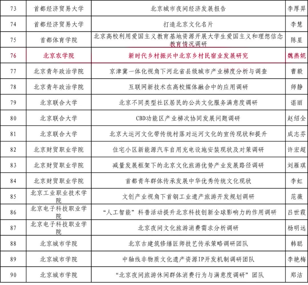 williamhill英国魏燕妮老师主持申报的《新时代乡村振兴中北京乡村民宿业发展研究》获评教师组优秀团队项目。