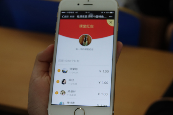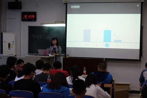雨课堂将复杂的信息技术手段融入到PowerPoint和微信,课堂上实时答题、红包奖励、弹幕互动,拓展了互动参与的广度,手机从低头工具变成了抬头的利器,扫码签到、随机点名,为教师节省了更多了工作时间,课前预习内容推送、课后小结反馈均有后台大数据支持,形成的个性化报表让教与学更具针对性。承担《毛泽东思想与中国特色社会主义理论体系》课程教学的张一平老师说:“课堂实时测试,结果即时呈现,既检验了学生听讲的效果,也吸引了他们的注意力;学生通过雨课堂“消息”“投稿”等选项发送学习心得或提出意见建议,课下、课上无缝衔接,课堂互动永不下线。”许多同学感到,原来总以为公共基础课枯燥乏味,没想到思政课严肃中有活泼,庄重又不失轻松,还可以光明正大的“玩手机”。