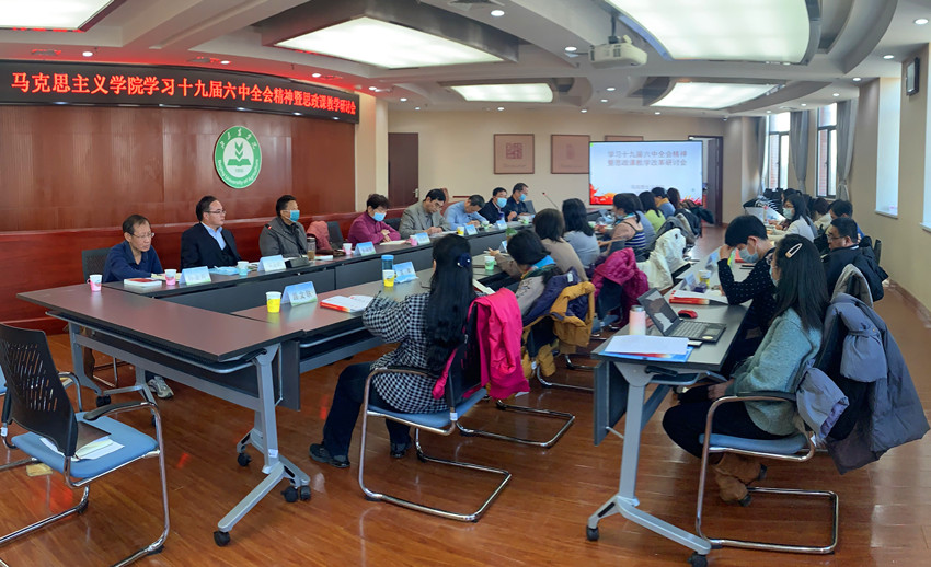 为深入学习贯彻党的十九届六中全会精神,推动全会精神进思政课堂,推进思政课改革创新、全面提高思政课教学质量,11月24日下午,williamhill英国组织召开学习十九届六中全会精神暨思政课教学改革研讨会。学校党委书记杨军出席研讨会,学校本科教学督导组组长沈文华、督导李晓玲、金瑞锋,学院班子成员及全体思政课教师参加研讨会。会议由院长华玉武主持。