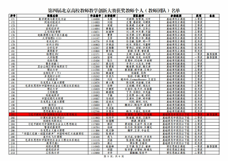 该项赛事是《教育部直属单位三评一竞赛保留项目清单》中唯一的本科高校教师教学竞赛活动,该项赛事被誉为“全国教师教学奥林匹克大赛”。第四届北京高校教师教学创新大赛由北京市教委主办、北京理工大学承办,本届市赛共设置新工科、新农科、新医科、新文科、基础课程、课程思政六个赛道,每个赛道分正高、副高、中级及以下三个组别,共18个组。大赛历时6个月,全市共有74所本科高校(含民办、军队院校)共计366组教师(团队)参加市赛,经网络评审,146组教师(团队)晋级现场汇报环节。最终评出一等奖23名、二等奖48名,三等奖75名,优秀奖108名。