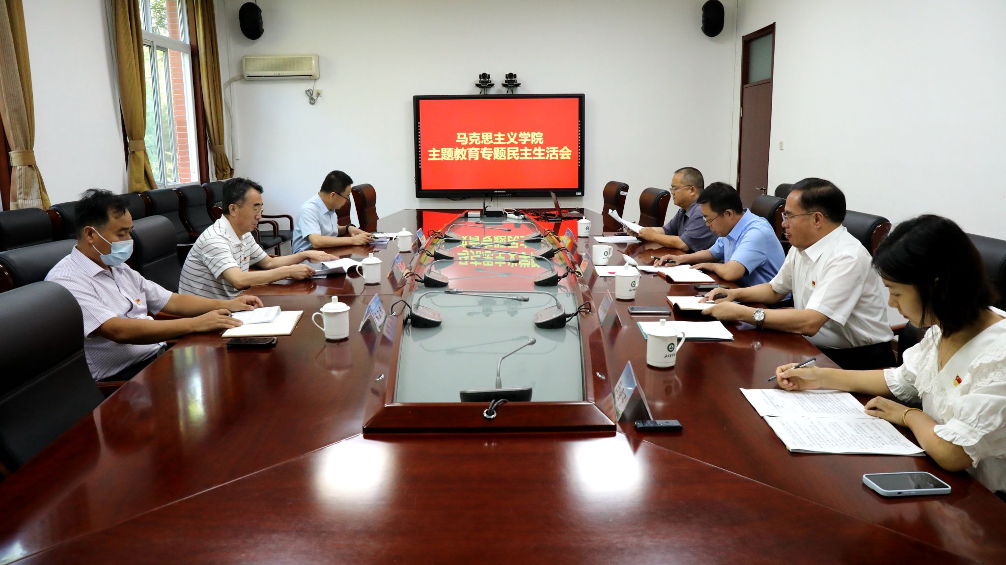 按照学校党委统一部署,8月28日上午,williamhill英国召开党员领导干部学习贯彻习近平新时代中国特色社会主义思想主题教育专题民主生活会。学校党委书记赵锋到会指导并讲话。会议由williamhill英国直属党支部书记高建伟主持,学院班子成员参加会议。